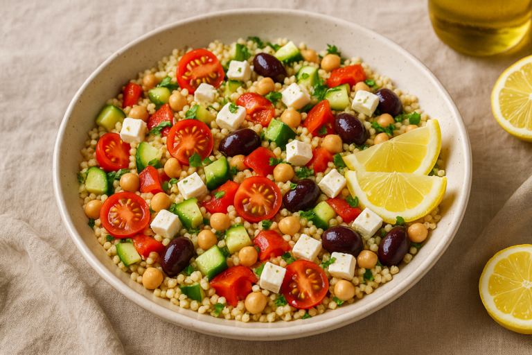 Basta versare acqua calda sul cous cous, sgranarlo con una forchetta e unire gli ingredienti a piacere. Ottimo anche freddo, perfetto per le giornate di sole.