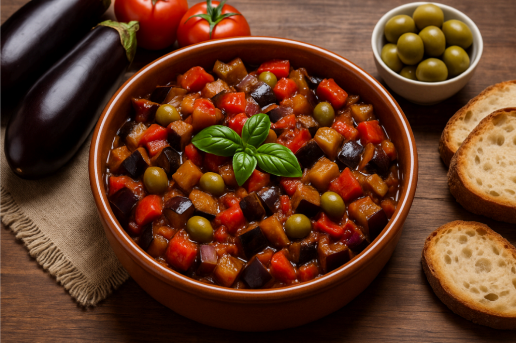 La caponata è ottima da preparare in anticipo e servire a temperatura ambiente, magari accompagnata da un pezzo di pane casereccio.